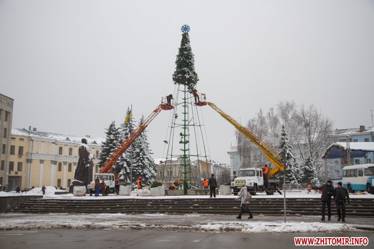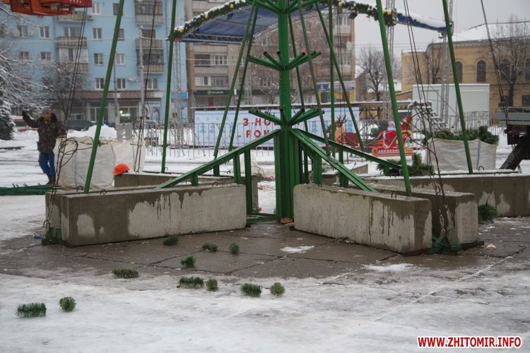 Новорічні свята завершилися: 20 січня, одразу після Водохреща, у Житомирі приступили до демонтажу головної ялинки міста.