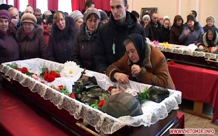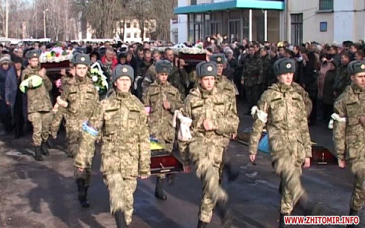 З двома військовослужбовцями, що загинули під час несення служби у зоні АТО попрощалися 1 лютого у Бердичеві. Кілька тисяч людей прийшли до 30-го гарнізонного будинку офіцерів, щоб вшанувати пам'ять героїв Олександра Пителя та Олександра Венгера.