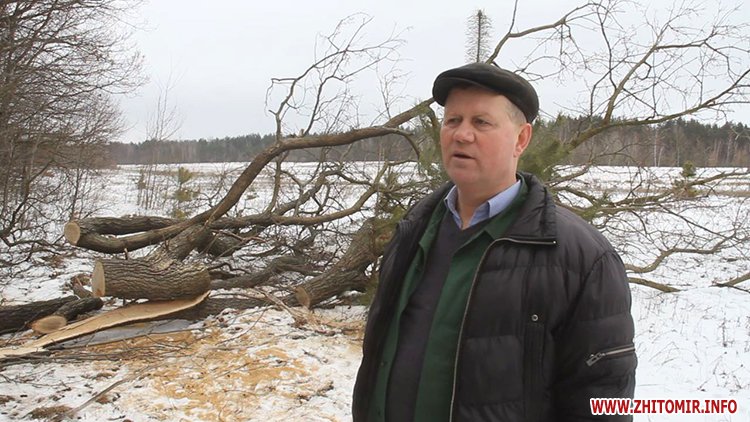 «Ми знаходимося на місці скоєння незаконної порубки невстановленими особами, на землях запасу Денишівської сільської ради. Зрізано дерева дуба у кількості більше 100 дерев, проведено заміри пеньків для встановлення шкоди, заподіяної деревам і лісу», - розповів інспектор Державної екологічної інспекції у Житомирській області Сергій Авраменко.