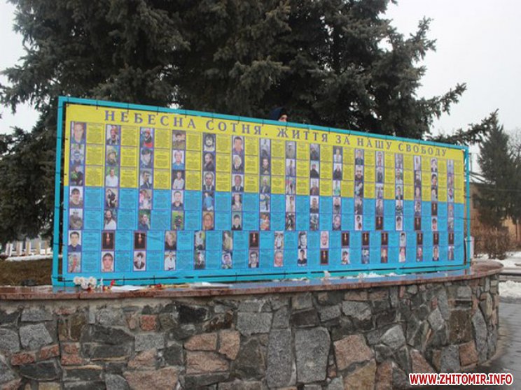 «Активісти Самооборони Бердичева і району, що виступили ініціаторами встановлення, самі займались збором коштів та виготовленням стенду, який нагадуватиме бердичівлянам про відвагу, мужність та героїзм борців за право українського народу бути собою. Стенд пам’яті героїв Небесної сотні представники організації встановили на центральній площі міста на місці, де раніше були розміщені світлини полеглих на Майдані», - пише сайт.