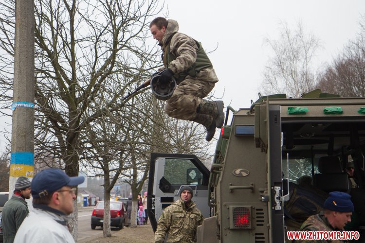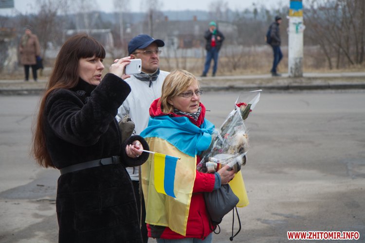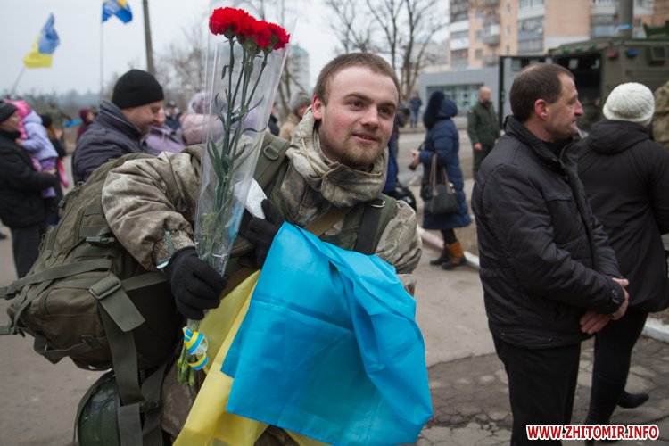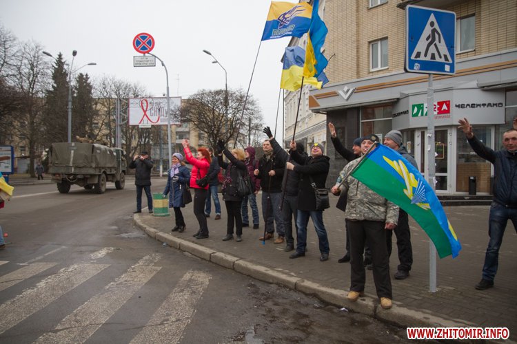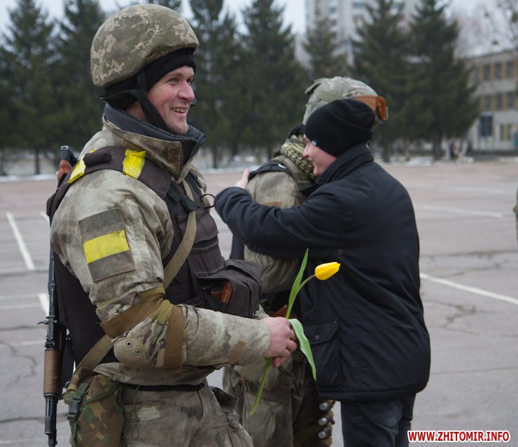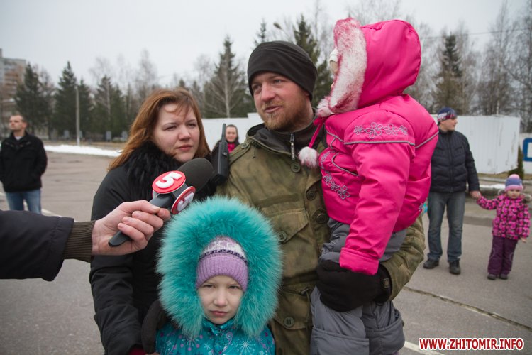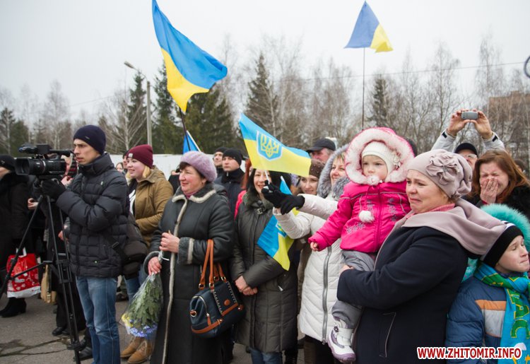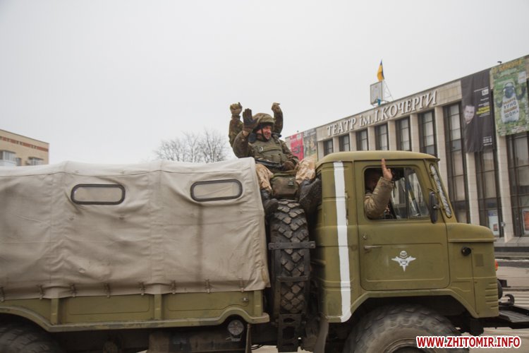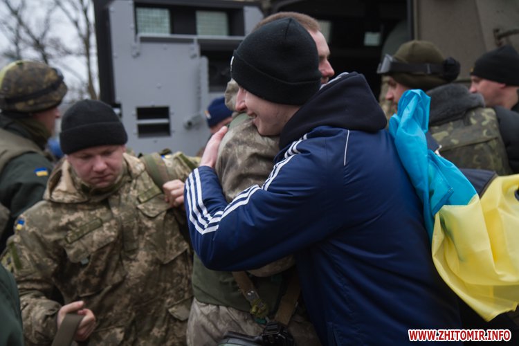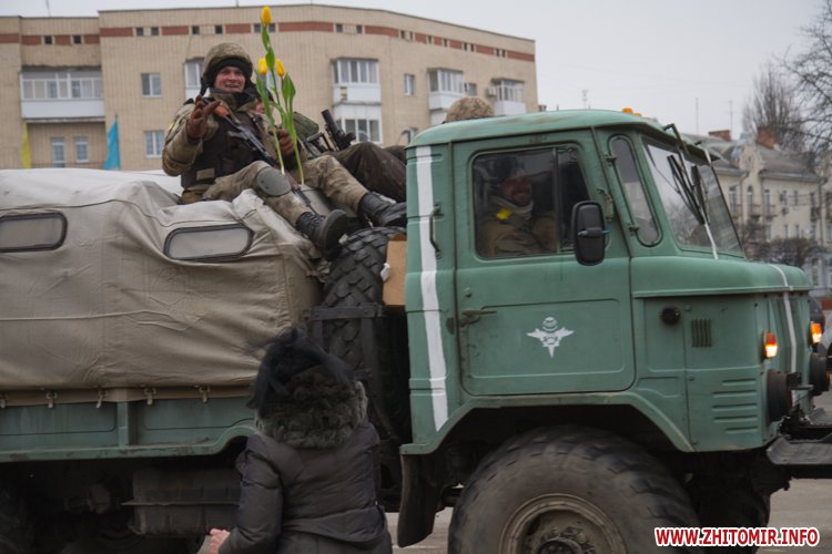 22 лютого близько сотні військовослужбовців 13-го батальйону 95-ї окремої аеромобільної бригади повернулись до Житомира після виконання бойових задач на сході України. Зустріти бійців прийшли родич та друзі. В руках люди тримали державні прапори України та символіку високомобільних десантних військ.