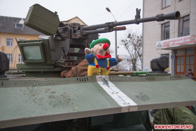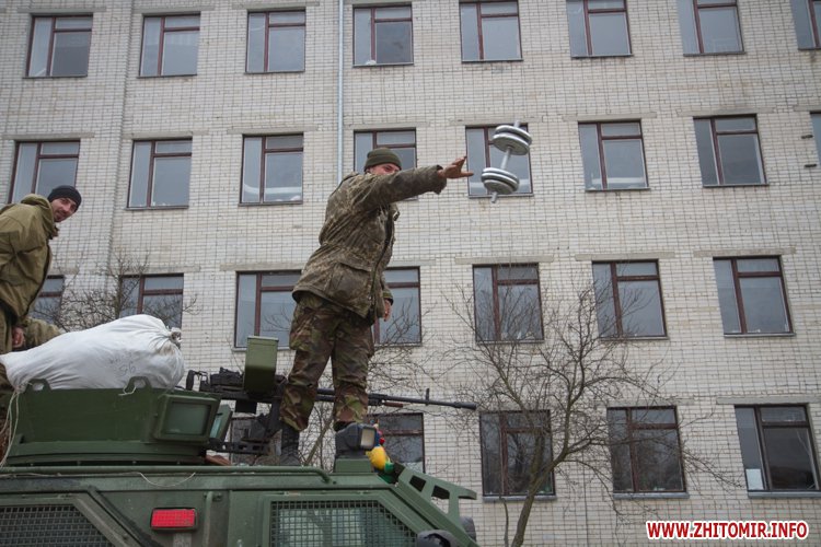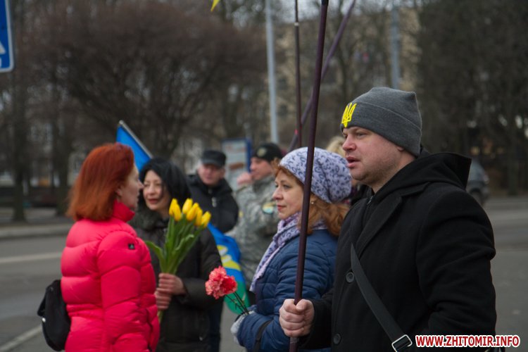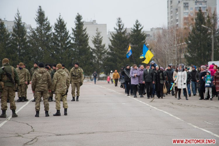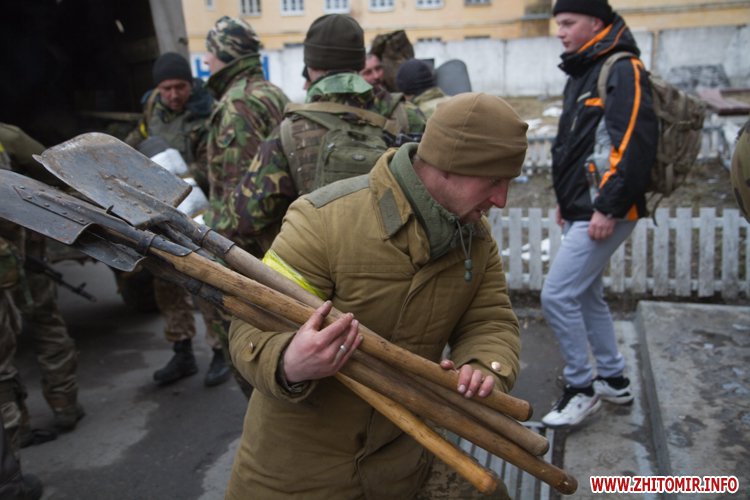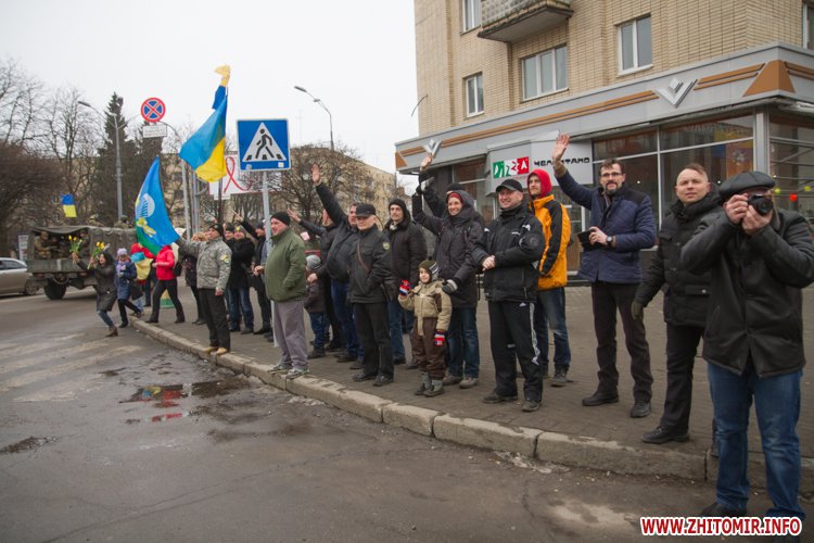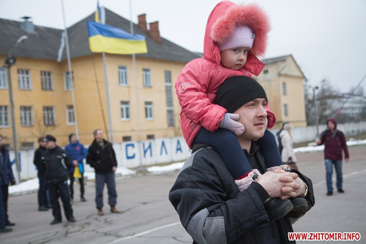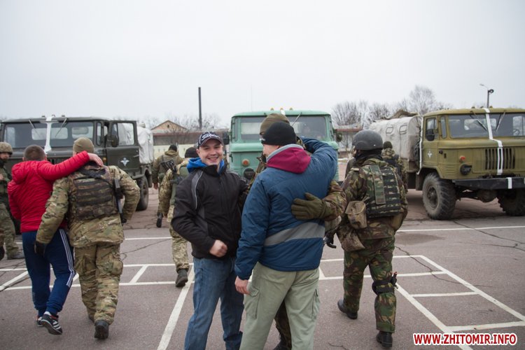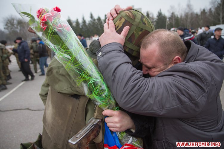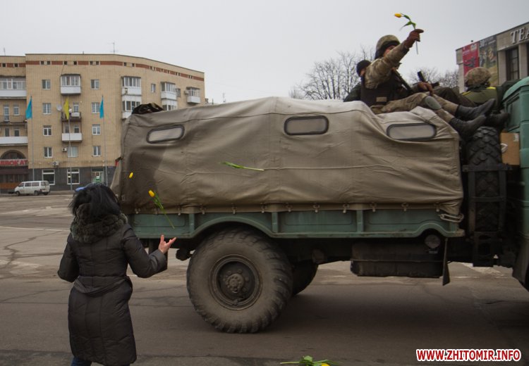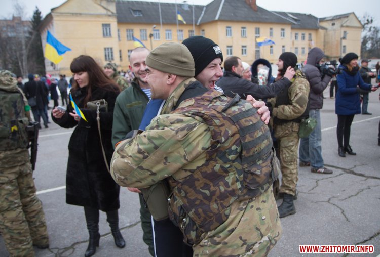 22 лютого близько сотні військовослужбовців 13-го батальйону 95-ї окремої аеромобільної бригади повернулись до Житомира після виконання бойових задач на сході України. Зустріти бійців прийшли родич та друзі. В руках люди тримали державні прапори України та символіку високомобільних десантних військ.