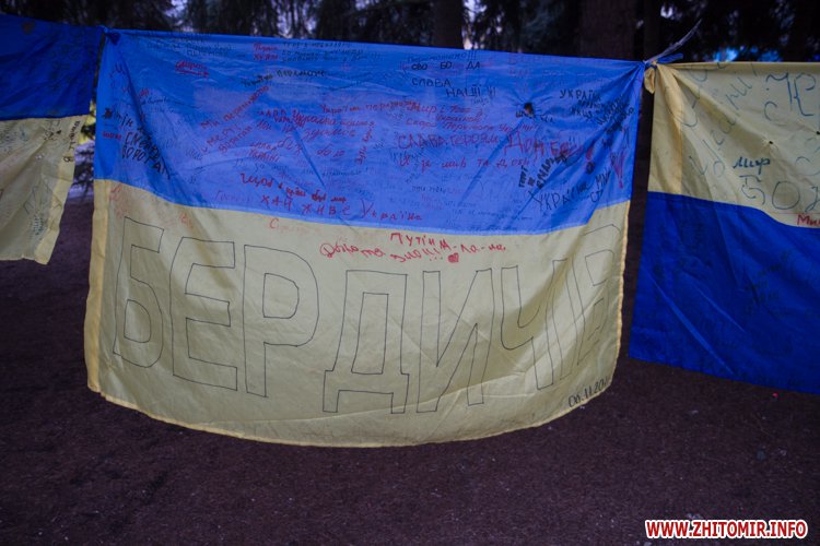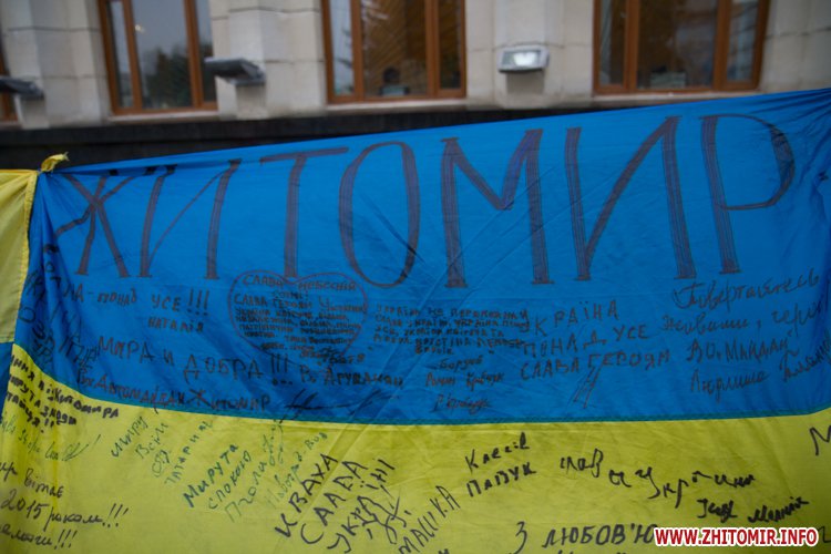 26 лютого організаторка «Великої української ходи» Катерина Валевська приїхала у Житомир, аби презентувати колекцію українських стягів, підписаних активістами з усієї країни.
