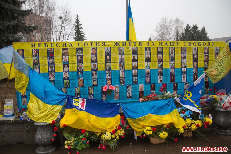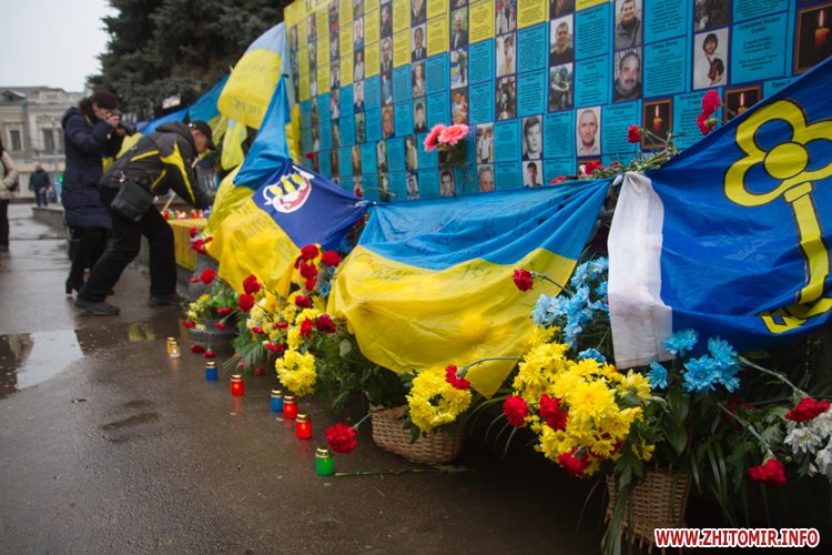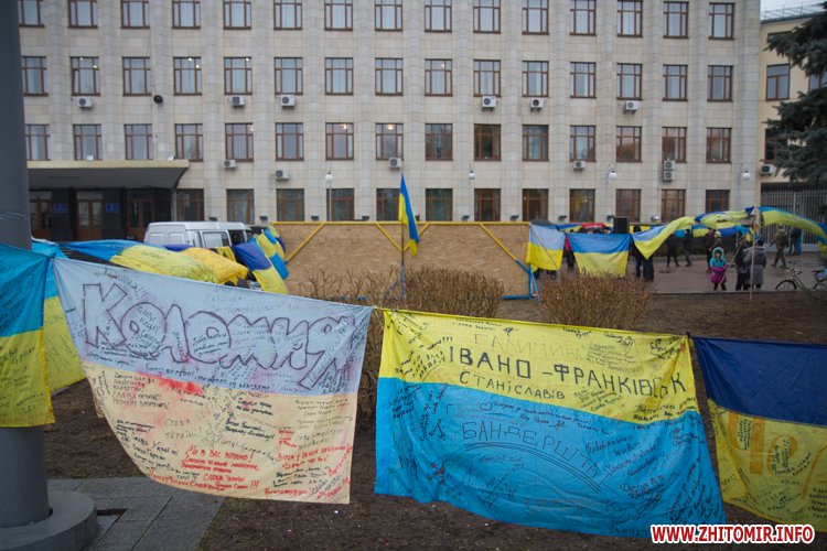 Пропори вивісили на майдані Корольова, навпроти стели Небесної сотні під будівлею облдержадміністрації.