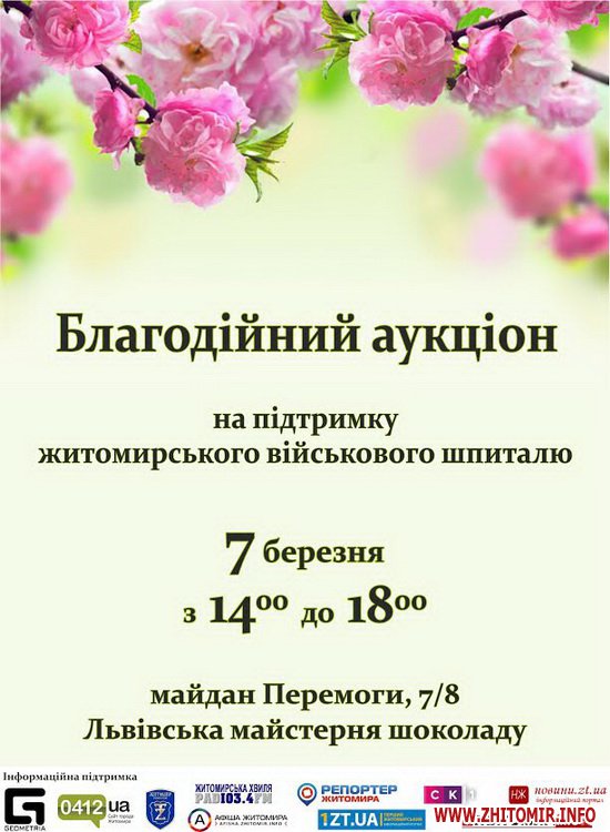 Організатори благодійного аукціону запрошують житомирян і гостей міста не бути байдужими і разом підтримати наших героїв.
