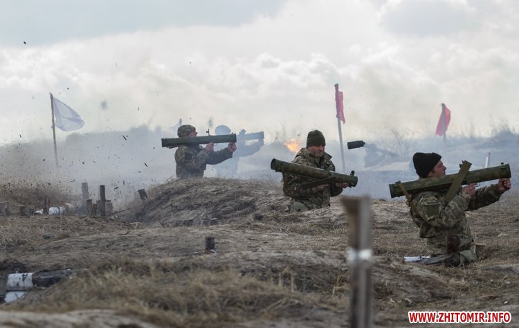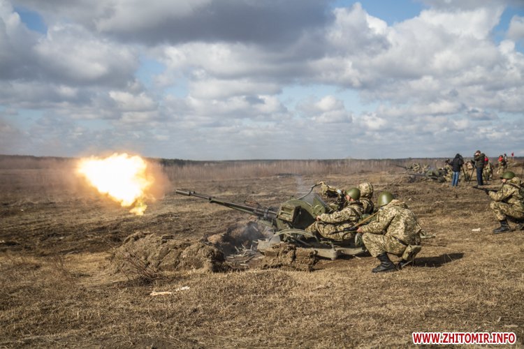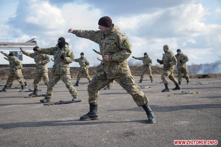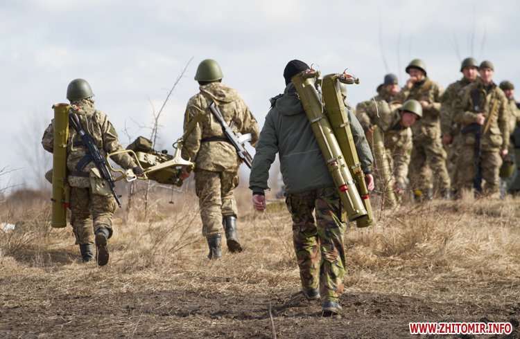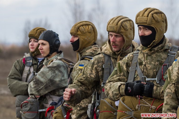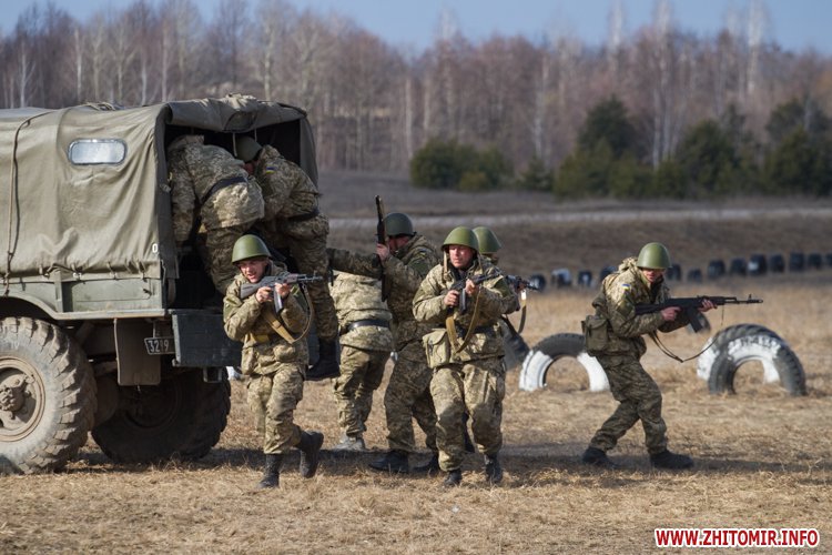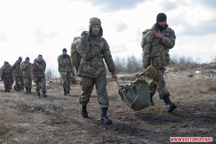 6 березня на військовому полігоні під Житомиром відбулися показові навчання відмобілізованих «крилатих піхотинців» високомобільних десантних військ Збройних Сил України.
