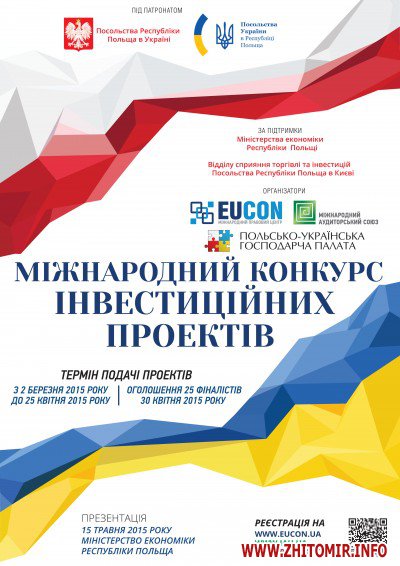 Організатори конкурсу розповіли Житомир.info, що свої інвестиційні проекти товаровиробники можуть надсилати ще протягом місяця – до 25 квітня. Подати заявку на участь у конкурсі можна на сайті www.eucon.ua.