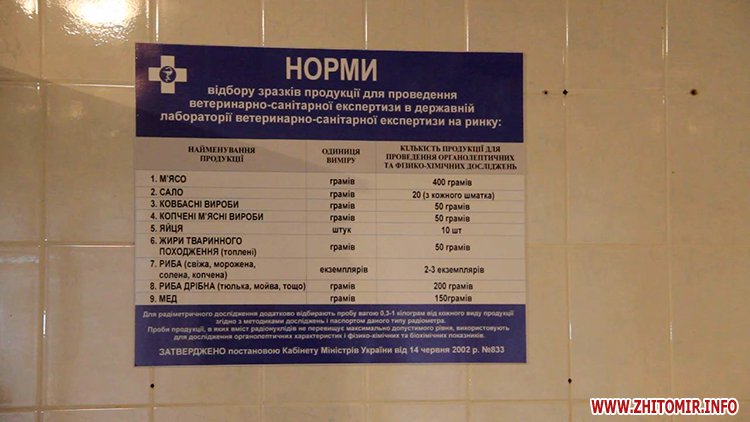 «Все м’ясо, яке поступає для продажу на Житній ринок, перевіряється в лабораторії, м’ясо поступає з рампи в оглядовий зал. Оглядовий зал вміщує від 8 до 10 м’ясотуш, тут проводиться органолептична оцінка м’ясотуш, відбір проб внутрішніх органів, тобто печінки і селезінки, серця, легень, і потім уже відібрані проби досліджуються на трихінельоз. В залежності від результатів експертизи видається експертний висновків кожному торгуючому і вони вже проходять в торговий зал», - розповідає завідуючий лабораторією ветеринарно-санітарної експертизи Євгеній Давидов.
