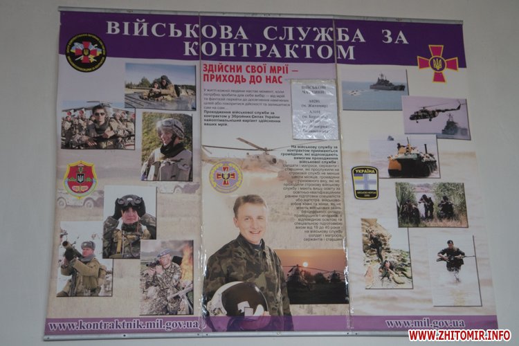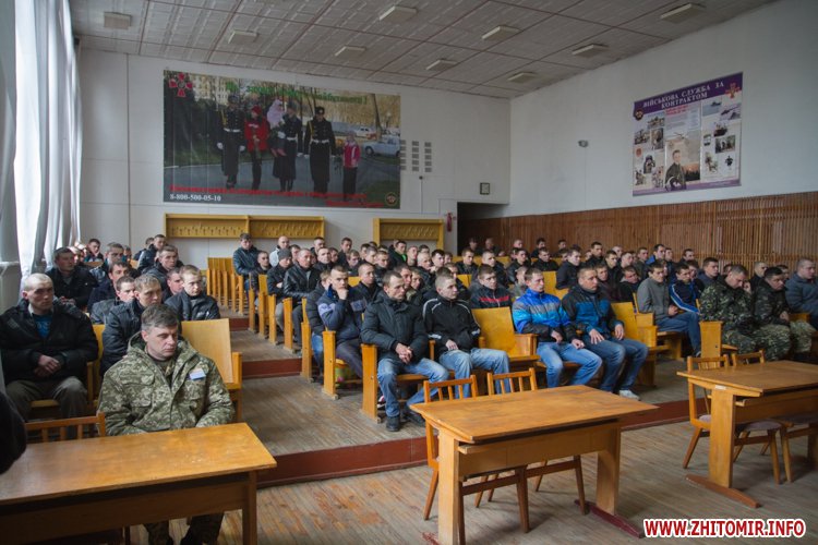 «1 квітня згідно указу президента розпочався призов на військову службу до лав Збройних сил та інших військових формувань. Житомирській області поставлено завдання – за цей призов відправити до війська 926 чоловік. Це будуть юнаки від 20 до 27 років. Вони будуть направлені до військових частин ЗСУ, частина піде до Національної гвардії, частина – до спеціальної служби транспорту. Згідно з рішенням РНБО, юнаки, які підуть на строкову військову службу не будуть залучатися до дій в антитерористичній операції», - розповів заступник Житомирського обласного військового комісара по роботі з особовим складом Олександр Рець.