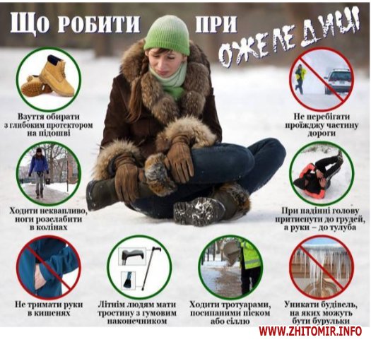 Щоб зменшити ризик травм в ожеледицю дотримуйтесь таких порад: