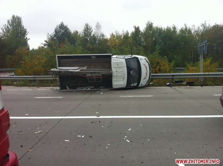 На 153 кілометрі трасі Київ–Ковель–Ягодин у Житомирській області Газель перекинулась після зіткнення з Nissan.