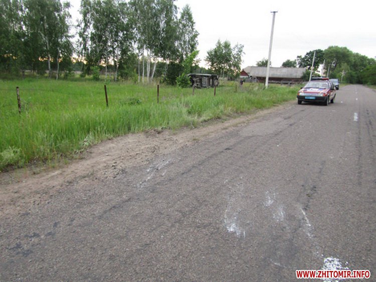 «Дорожньо-транспортна пригода сталась 6 червня близько 17.30 поблизу с. Мелені Коростенського району. Унаслідок ДТП травми різного ступеню тяжкості отримали водій та двоє пасажирів автомобіля Renault Trafic. На місці події працювала слідчо-оперативна група Коростенського відділу поліції. За попередньою інформацією, водій автомобіля Renault Trafic, 44-річний житель Малинського району, рухаючись у напрямку смт Чоповичів, не вибрав безпечної швидкості руху та з’їхав у кювет, де автомобіль перекинувся. Унаслідок ДТП травми отримали водій та його пасажири: 24-річний житель м. Житомира та 23-річна жителька Малинського району. Їх було шпиталізовано до медичних закладів м. Коростеня та Малинського району», - інформує поліція.