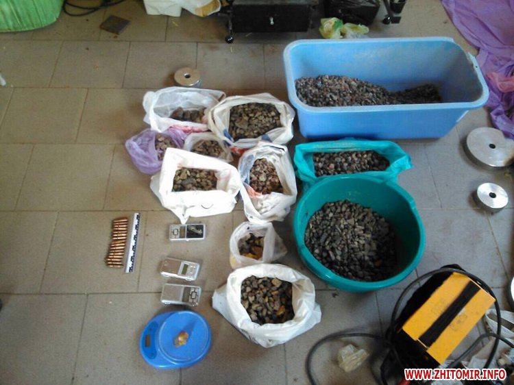 «Групу «цеховиків», які займалися скупкою і обробкою незаконно видобутого бурштину для подальшого його перепродажу і переправлення до Близького Сходу, викрили на Житомирщині співробітники Служби безпеки України спільно з поліцією під процесуальним керівництвом прокуратури. Ділки – четверо мешканців Коростенського і Лугинського районів – скуповували бурштин-сирець у нелегальних копачів на Житомирщині та Рівненщині. Огранка «сонячного каменю» відбувалася у гаражі одного із зловмисників, де вони облаштували підпільний цех. Під час 10-ти санкціонованих обшуків у скупників та учасників «бурштинового» бізнесу правоохоронці вилучили майже 100 кг необробленого бурштину-сирцю великої фракції, близько 7 кг обробленого бурштину, спеціальне обладнання: чотири станки для огранки каменю, пристрої прийому-скупки бурштину, а також чорнові записи ділків. За попередніми висновками експертів, орієнтовна вартість вилученого «сонячного каменю» становить п’ять мільйонів гривень за цінами «чорного ринку». Відкрито кримінальне провадження за ч. 3 ст. 15 та ч. 2 ст. 240 Кримінального кодексу України. Тривають слідчі дії», - розповіли в СБУ.