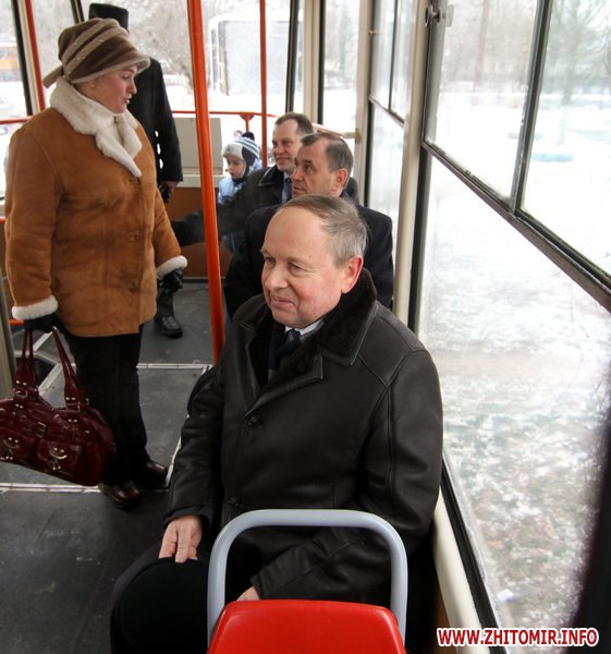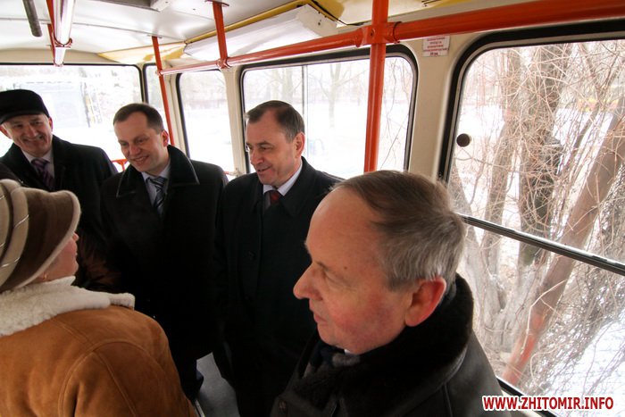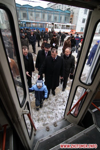 Трамваи представили руководители города и области: мэр Житомира Владимир Дебой, губернатор Житомирской области Сергей Рыжук и председатель Житомирского облсовета Иосиф Запаловский.