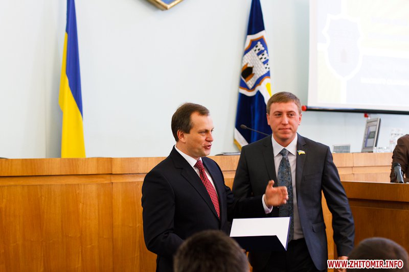 Как сообщал Житомир.info, сессия началась с поздравлений. Торжественная часть длилась до 11.00. Мэр Житомира Владимир Дебой вручил депутатам почетные грамоты по случаю Дня местного самоуправления