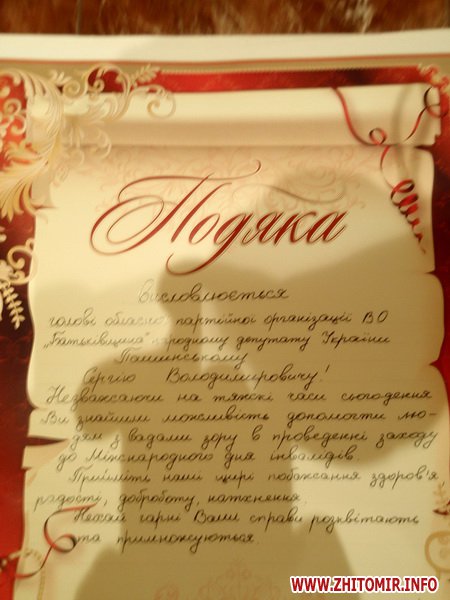 Нещодавно на ім’я народного депутата України, керівника обласної партійної організації «ВО «Батьківщина» Пашинського С.В. надійшла подяка від людей з вадами зору. Завдяки підтримці спонсорів, а особливо Пашинського Сергія Володимировича та депутата міської ради Цимбалюк Любові Володимирівни вперше в історії міста відбувся захід для людей з вадами зору.