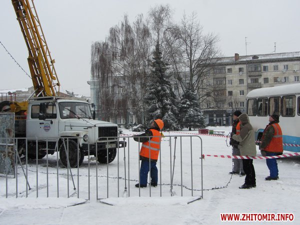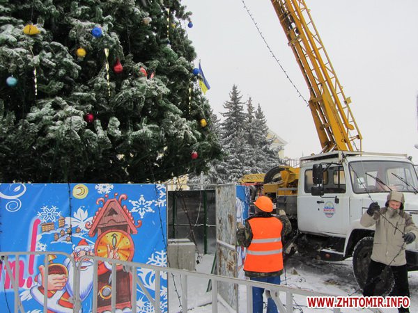 Утром 20 января на площади Королева в Житомире начали разбирать главную новогоднюю елку города.