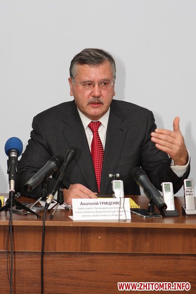 Житомир відвідав Анатолій Гриценко. Він очолює партію «Громадянська позиція» і йде на вибори до Верховної ради України, розраховуючи на перемогу опозиційних сил та зміну нині діючої влади.