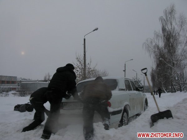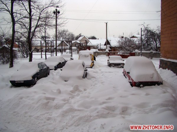 Житомир майже три доби засипає снігом. Завірюха почалася в п\'ятницю 3 лютого, сніг засипав місто всі вихідні. Метелиця зупинялася лише в неділю, але сьогодні на ранок сніг пішов знову. За кілька днів випало більше місячної норми опадів. Товщина снігу складає 52 см. Влада закликає водіїв утриматись від виїзду на дороги.