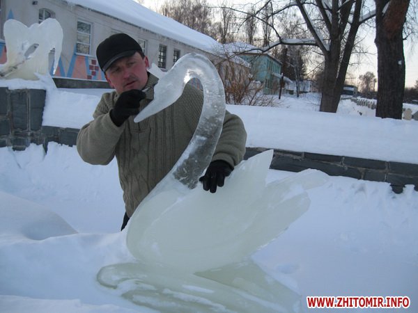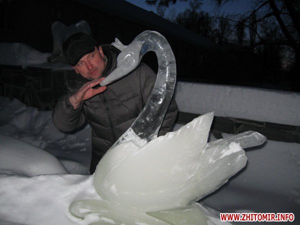 40-річний приватний підприємець Олександр Тимошенко із Малина Житомирської області з дитинства мріяв створити щось неповторне власними руками. Зоотехнік за фахом, а художник за покликанням, Олександр виготовляє льодяні скульптури.