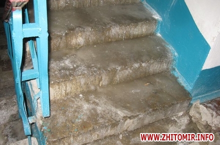 В Житомире 10 февраля в микрорайоне Крошня в четырех рядом стоящих домах подъезды покрыты льдом. В многоэтажных домах по адресу Крошенская 4а,6, 8 и Садовая 15а замерзают ливневые трубы и вода течет прямо в подъезд.