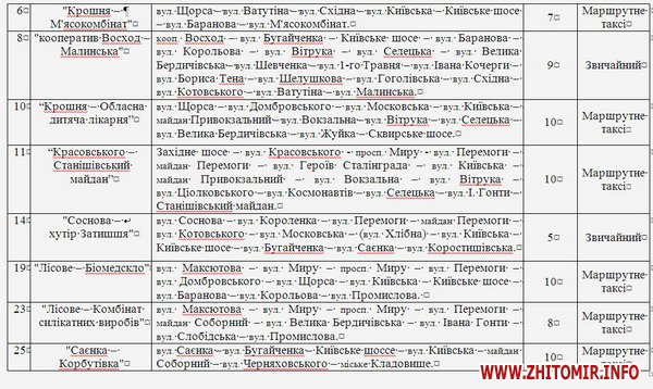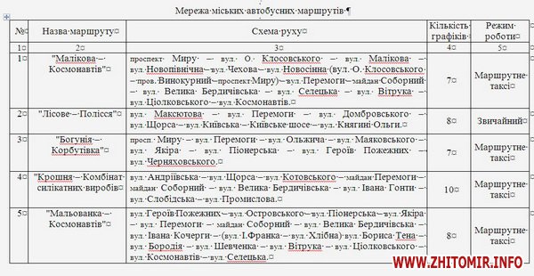 Відповідно до рішення виконкому кількість маршрутів у місті Житомирі скоротилася з 29 до 26. Містом курсуватимуть маршрути: