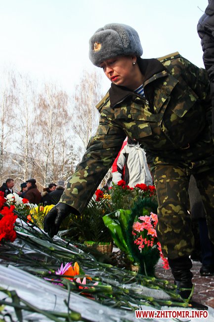 По случаю Дня чествования участников боевых действий на территориях других государств, 23-й годовщине вывода советских войск с территории Республики Афганистан руководство области и города, участники боевых действий, вдовы погибших, общественность Житомира пришли к памятному знаку «Братьям, погибшим в Афганистане» (Черному тюльпану), чтобы склонить головы перед теми, чьи жизни уже не вернуть, и почтить память украинских воинов.