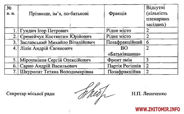 Секретарю горсовета Наталии Леонченко был направлен информационный запрос о депутатах городского совета, которые отсутствовали больше чем на одном пленарном заседании сессий в 2011 году.