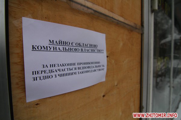 Утром 20 января в центре Житомира представители коммунального предприятия «Агентство по вопросам регионального развития» Житомирского областного совета закрыли доступ в помещение центрального телеателье по ул.Хлебной, 25.