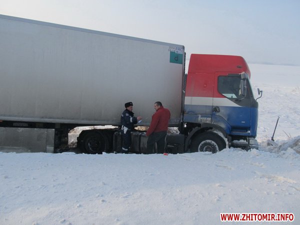 На место происшествия прибыл экипаж отдела ГАИ Малинского райотдела во главе с начальником Савченко В.Ю. Работники ГАИ с помощью грузовых автомобилей пытались сразу извлечь фуру из снежного плена, однако попытки были тщетными.