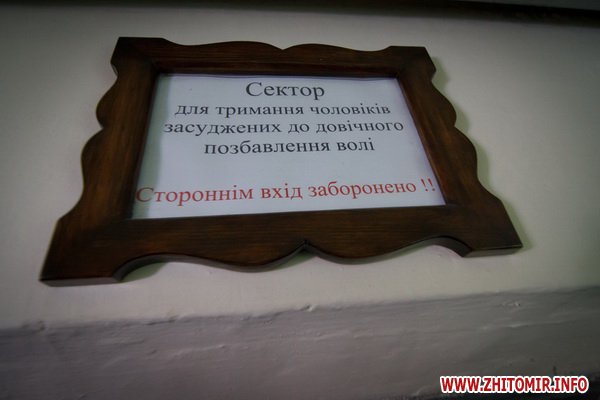 Помимо пожизненников, в житомирской «восьмерке» содержатся осужденные за умышленные особо тяжкие преступления (злочини), а также лица, переведенные из колоний среднего уровня безопасности за злостные нарушения режима. В общей сложности в Житомирском ИТУ содержится более тысячи человек, из них несколько десятков женщин и несовершеннолетних.