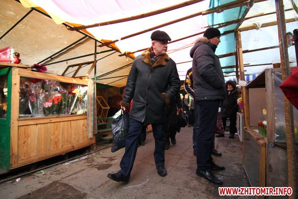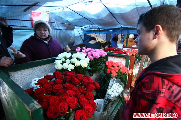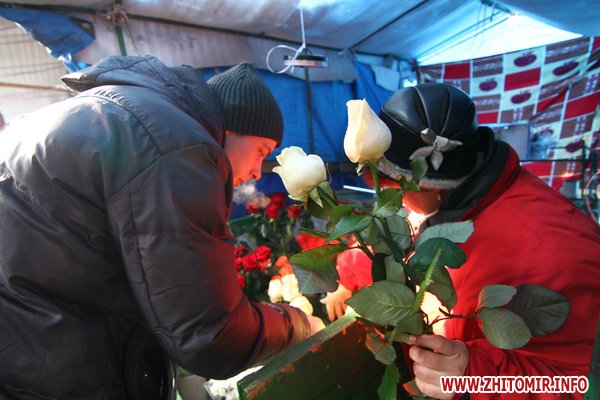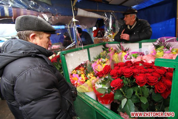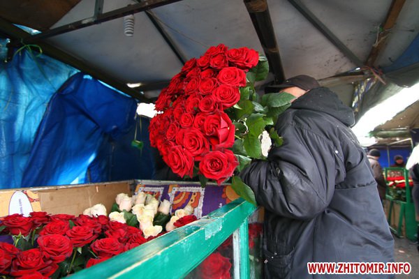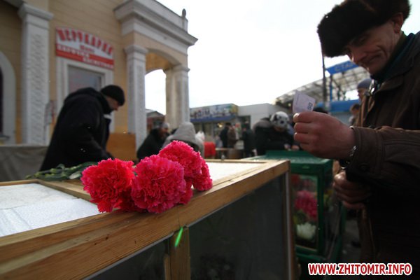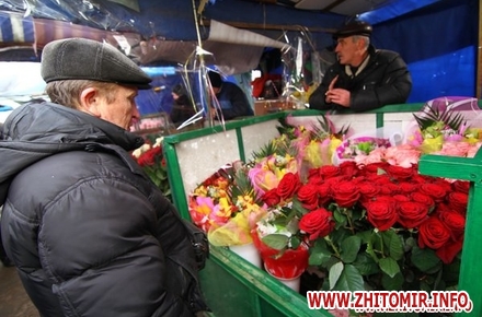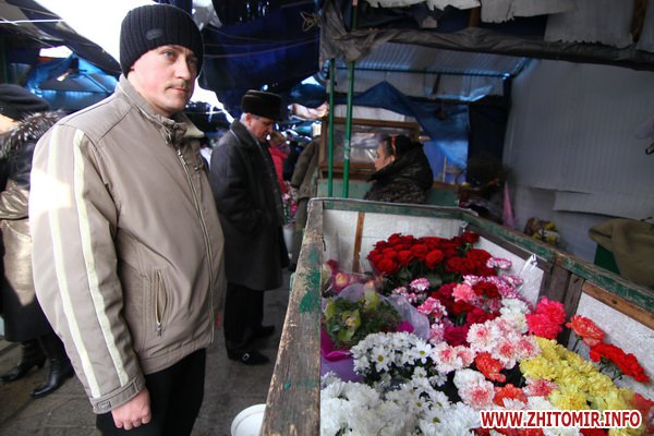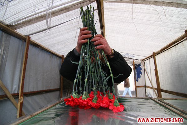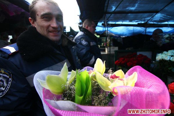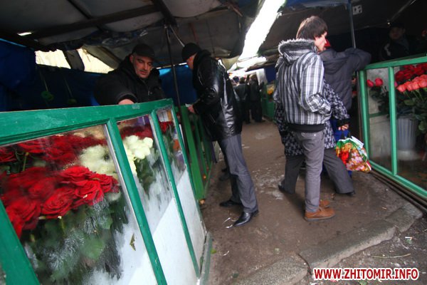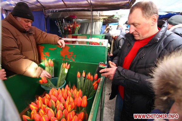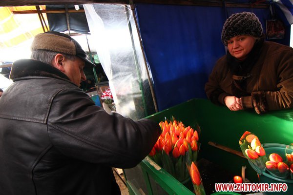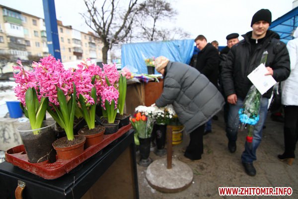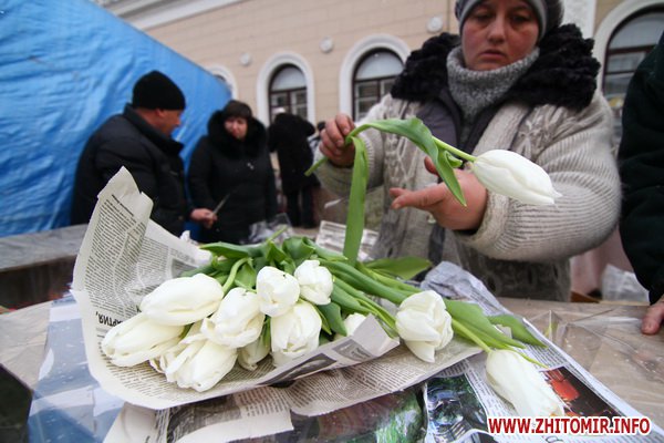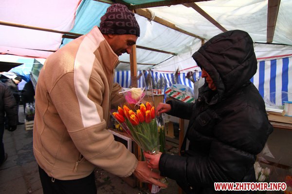 В Житомире 8 марта мужчины всего города, с самого утра, спешили за цветами на цветочные рынки, чтобы прикупить букет для своих любимых дам.