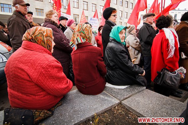 Под стенами облгосадминисрации, собрались около 200 сторонников Коммунистической партии Украины, в Житомире, 27 марта.