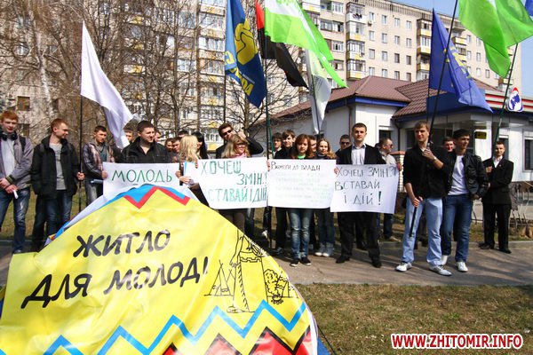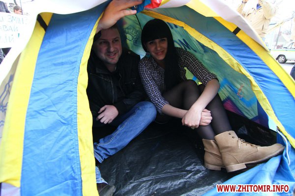 5 квітня, у скверику на вулиці Великій Бердичівській молодіжний рух "Вставай", розклавши намет, продемонстрував, яке житло теперішня молодь може себі дозволити.