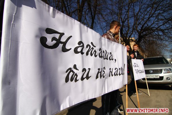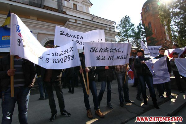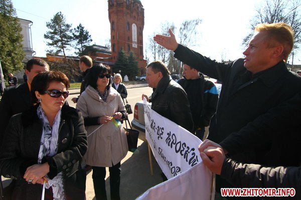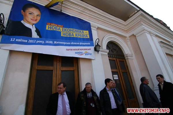 Около 20 сторонников партии "Батьківщина" пикетировали приезд депутата Верховной Рады, лидера партии "Украина Вперед" Наталии Королевской в Житомир. 12 апреля Королевская приехала в Житомир, чтобы представить свою новую программу «Новая экономика – новая страна».