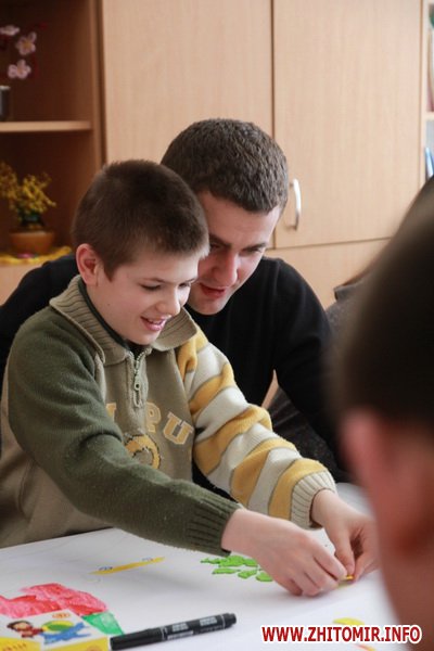 «В тетерівському інтернаті виховується 87 діток віком від 5 років. Це діти з обмеженими можливостями - вони навчаються за особливою програмою, де велика увага приділяється творчій реабілітації. Ці діти особливо раді гостям», - розповідає про підопічних молодих фронтовиків координатор молодіжного крила «Фронту Змін» Житомирщини Ольга Фаріон.