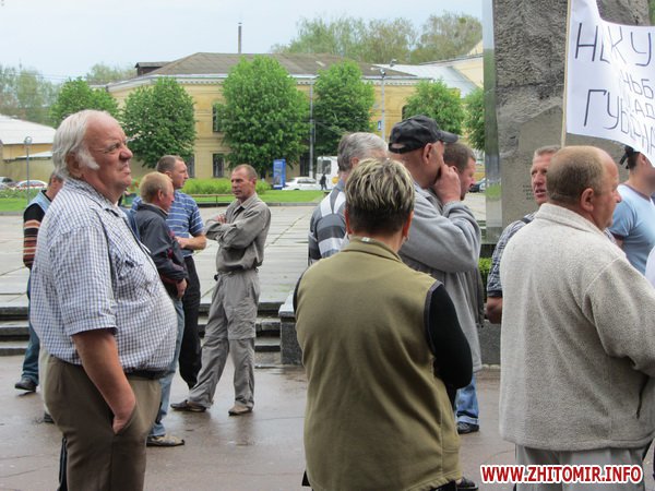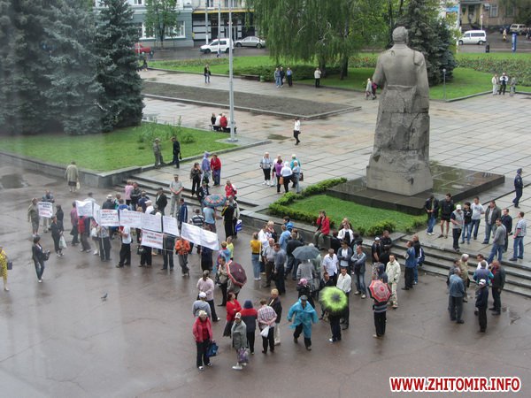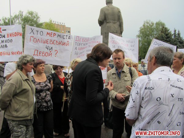 С 9 утра 3 мая в центре Житомира, возле здания облгосадминистрации митинговали уличные торговцы. Начальник главного управления информации и коммуникаций с общественностью Ирина Басова после разговора с участниками митинга пошла в мэрию и привела на совещание к Житомирскому губернатору Сергею Рыжуку представителей городской власти: первого заместителя мэра Галину Семенец, секретаря горсовета Наталию Леонченко и заместителя мэра Петра Закусило.