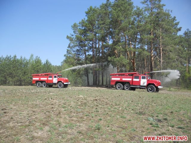 В ходе учений были отработаны вопросы организации тушения пожаров в лесных массивах различными методами, взаимодействия подразделений Территориального управления МЧС и Житомирского областного управления лесного и охотничьего хозяйства, органов власти, соответствующих специализированных служб на региональном и местном уровнях.