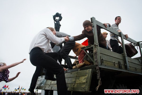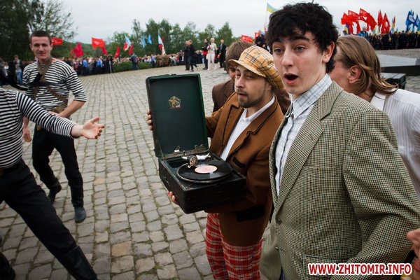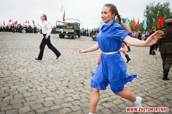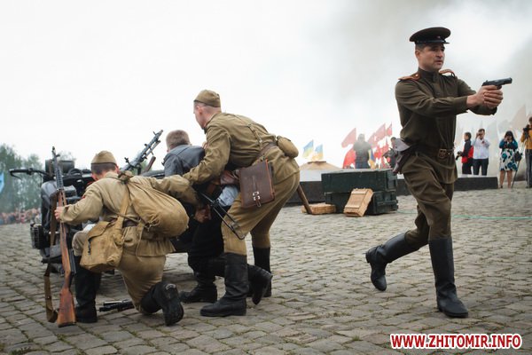 Актеры Житомирского академического музыкально-драматического театра им.И.Кочерги показали участникам торжественного митинга сценку о начале войны. А члены военно-исторического клуба «Красная звезда» и историко-патриотического объединения «Поиск» воспроизвели эпизод боя Великой Отечественной войны, в котором была задействована военно-историческая техника, пиротехника и даже настоящий самолет.