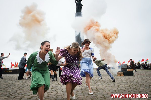 В День Победы в Житомире, возле монумента Славы, стреляли, брали пленных и радовались победе.