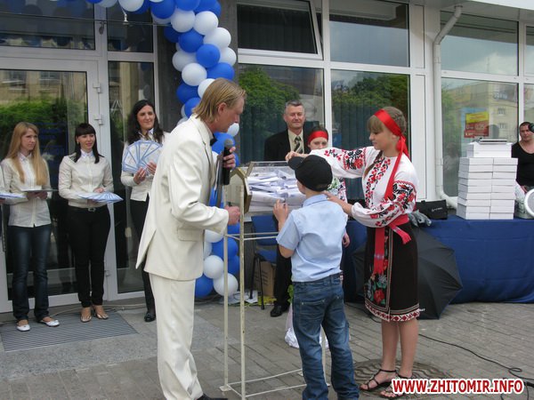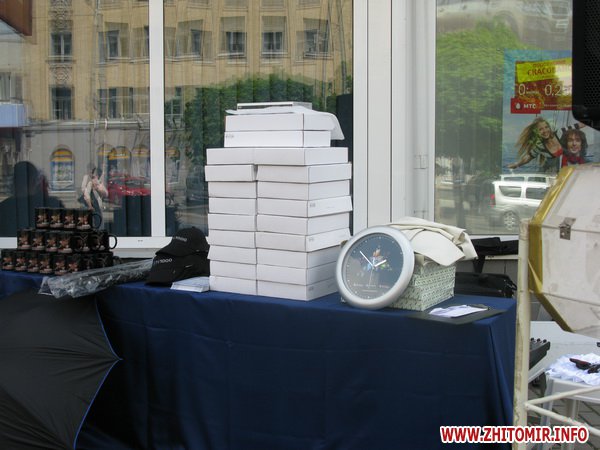 После этого состоялся праздничный розыгрыш призов среди абонентов кабельного и цифрового телевидения. Около сотни житомирян получили в подарок бейсболки, чашки, зонты и часы, еще 20 человек стали счастливыми обладателями тюнеров для цифровой телетрансляции.