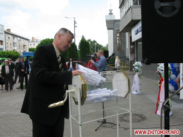 Директор компании вместе с заместителем Житомирского губернатора Виктором Балюрко и начальником управления транспорта и связи Житомирской мэрии Константином Подпокровным торжественно перерезали красную ленточку нового центра обслуживания абонентов.