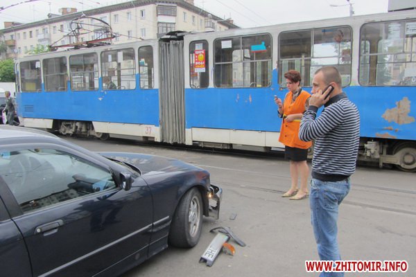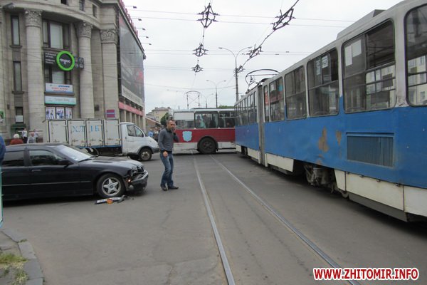 24 мая около 9.00 произошло ДТП на углу улиц Киевской и Московской. Автомобиль BMW, двигаясь в сторону автовокзала, врезался в трамвай, который двигался в сторону улицы Котовского.