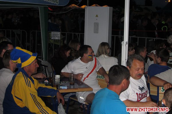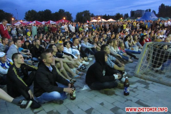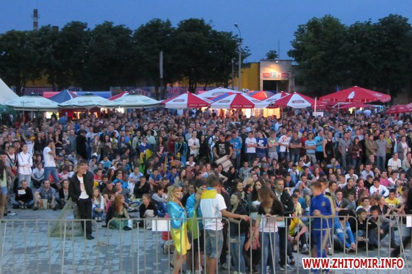 К началу матча Украина-Швеция житомирская фан-зона возле ТРЦ «Глобал UA» была переполнена. По оценкам УМВД Украины в Житомирской области, матч национальной сборной смотрели более 5 тысяч людей. Кроме фан-зоны и столиков кафе вокруг нее, болельщики также располагались на территории автостоянки, вдоль улицы Котовского, а некоторые даже сидели на крышах собственных машин.