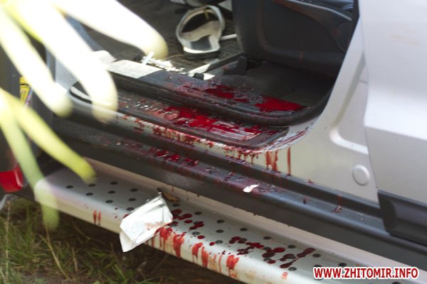 По словам очевидцев ДТП, джип Хюндай, двигаясь со стороны Житомира, выехал на встречную полосу и столкнулся с легковым автомобилем Шкода, в котором было четыре человека. После удара Хюндай съехал в кювет, где стояла припаркованная «копейка». Кроме этих авто, пострадал еще и автомобиль Ланос, который ехал следом за Шкодой. В результате ДТП он тоже оказался в кювете.