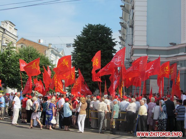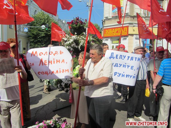 Утром 21 июня коммунисты пришли под стены Житомирской мэрии, протестуя против демонтажа памятника Ленину.
