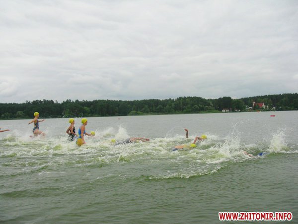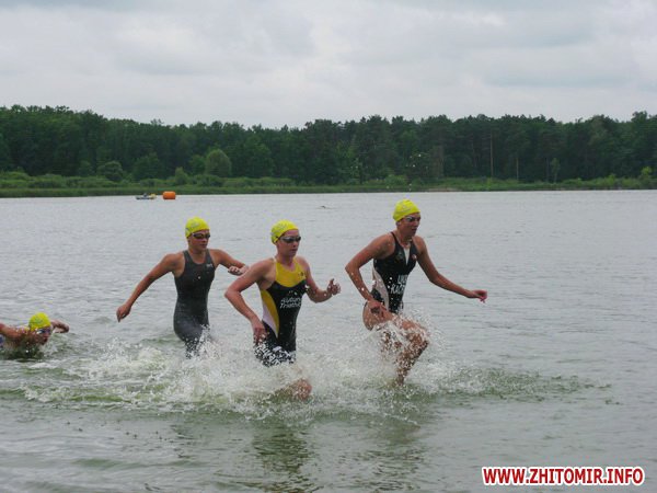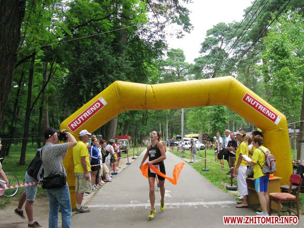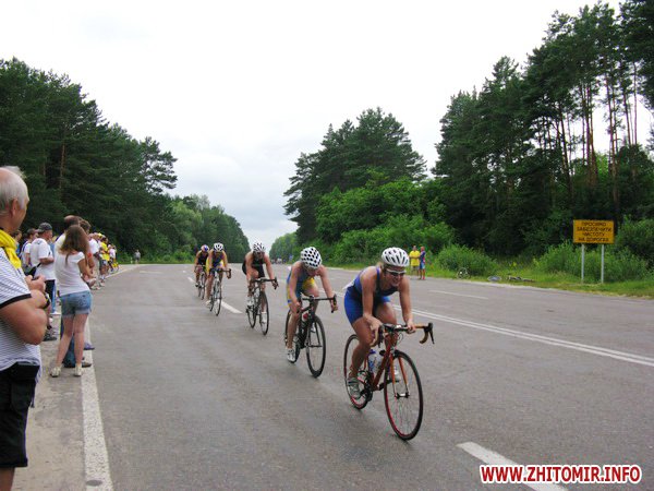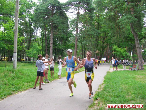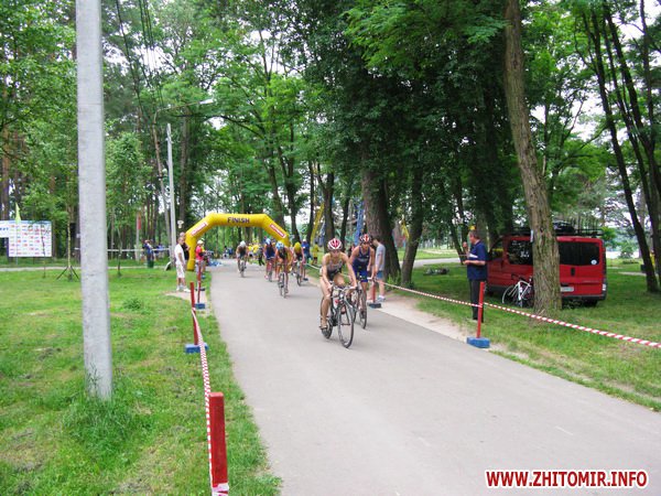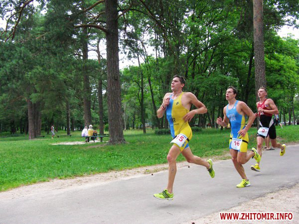 23 июня в житомирском гидропарке спортсмены со всей Украины боролись в индивидуальных соревнованиях. Сначала они проплыли в реке Тетерев дистанцию в 1,5 км., потом, только выбежав из воды, сели на велосипеды и проехали 4 круга по улице Черняховской, в общей суме преодолев еще 40 км. И, наконец, спортсмены пробежали еще несколько кругов по аллеям гидропарка, преодолев еще 10 км. В общей сумме триатлонисты всего за 2 часа преодолели 51,5 км.