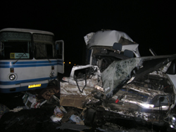 В результате сильного столкновения 17 пассажиров «Мерседеса» получили ранения, а водитель автобуса ЛАЗ, житель Новограда-Волынского – погиб на месте.