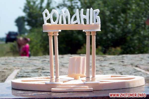 Урочисті заходи 8 липня 2012 року розпочалися презентацією в’їзного знаку, який уже зводиться, з боку села Залужне. Відповідно до запевнень керівництва Романова та району, продемонстрованого макету, він являтиме собою круг, у центрі якого розміщуватиметься книга із викарбуваними найважливішими історичними подіями населеного пункту. Від неї виходитиме сім променів, як сім доріг із його центру. На чотирьох колонах височітиме назва та надпис-запрошення відвідати славний Романів. Прекрасним, зворушуючим співом учасників заходу привітав хор районного Будинку культури «Від душі».