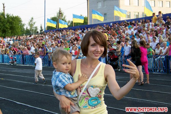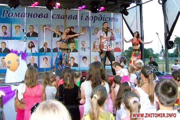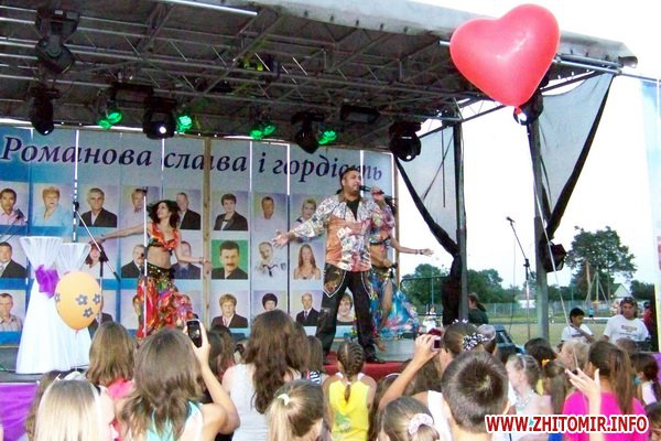 Однак справді день став святковим та веселим, коли на сцену піднялися Анна Бєлкіна та Любомир Чермак – вокалісти групи «НЕКСІ», фіналістка конкурсу Голос країни тернопільчанка Мар’яна Нестайко та, у супроводі шоу-балету «ВІВА-ДЕНС», Петро Чорний – скромне «чорне золото України». Їх зачаровуюча концертна програма, святковий феєрверк – це подарунок землякам від депутата Житомирської обласної ради, Почесного громадянина Романова Віктора Развадовського, який цього дня за критерієм людяності був визнаний переможцем у номінації «Відкрите серце».